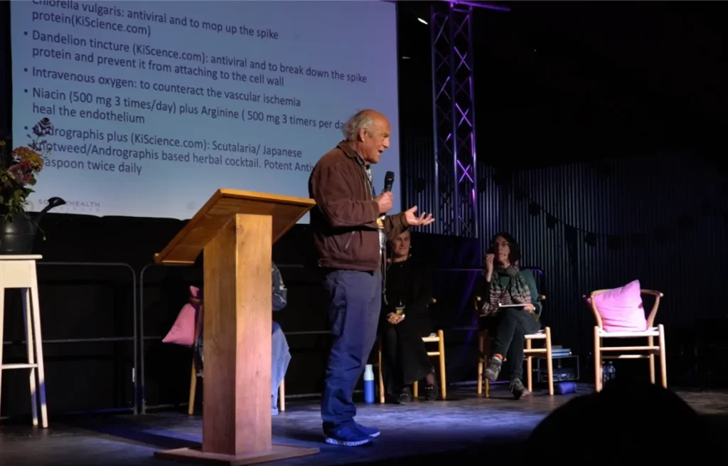 Jeden po druhém předstupovali před publikum a sdělovali stejnou, nepříjemnou pravdu: ať už jste dostali injekci Covid, nebo ne, pravděpodobně chodíte po světě s bílkovinou z hrotu ve svém těle. Vylučování dechem, kůží, tělesnými tekutinami znamená, že tento toxický protein je nyní téměř všudypřítomný.